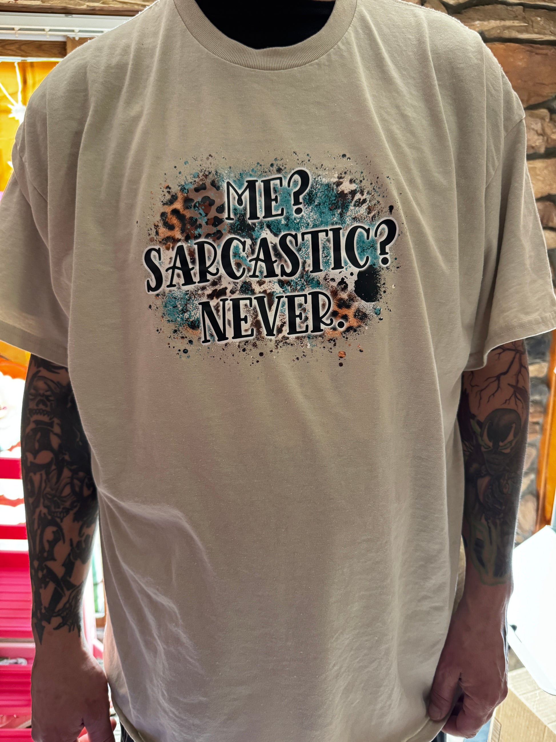 Who, me? Sarcastic? Never. This tee is dripping with denial — and just a hint of sarcasm. Perfect for the professionally misunderstood.